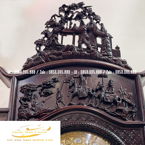 Điểm nhấn không thể bỏ qua ở đồng hồ gỗ gụ cổ điển chính là những hoa văn được chạm khắc thủ công tinh vi. Từng đường nét uyển chuyển, họa tiết tỉ mỉ thể hiện tài hoa của nghệ nhân, mang đậm phong cách cổ điển và quý tộc.