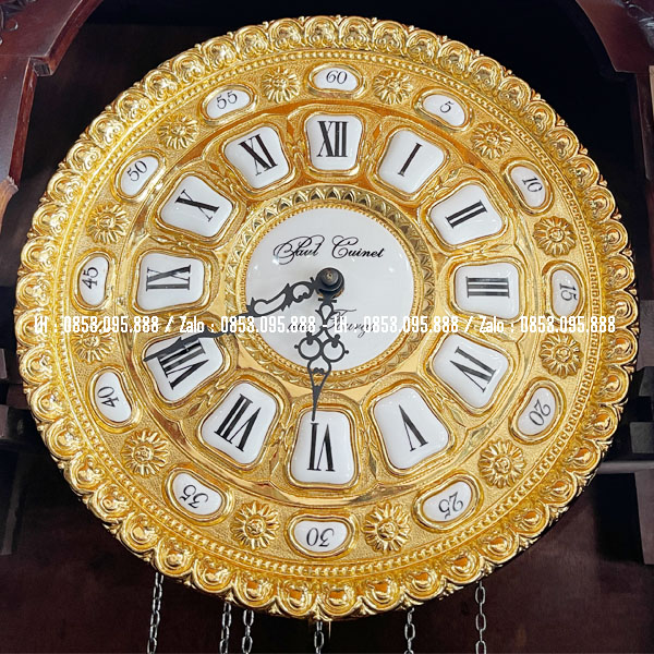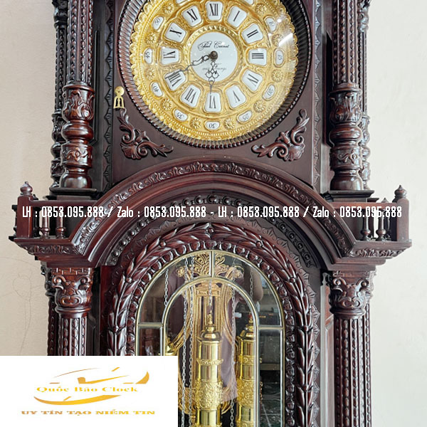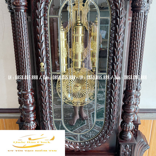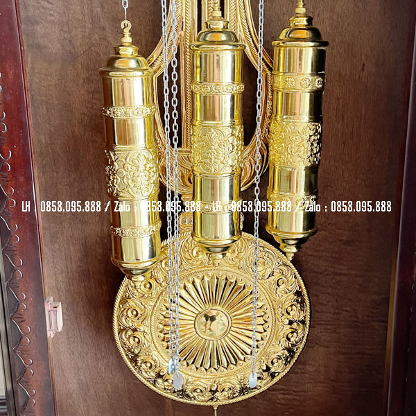 Quả lắc & bộ máy: Được chế tác tỉ mỉ, mạ vàng sang trọng, tạo điểm nhấn nổi bật. Bộ máy cơ nhập khẩu châu Âu, hoạt động ổn định, bền bỉ theo thời gian.
